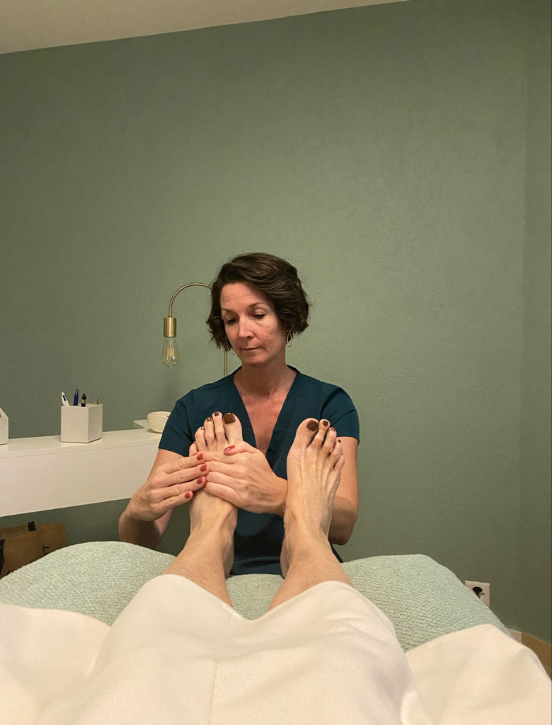 Ensuite vous êtes installé confortablement et je commence la séance par un massage relaxant qui me permet de prendre contact avec vos pieds et de commencer mon évaluation, je continue la séance en fonction de vos besoins et de mon évaluation. La séance dure 1h et se termine par un massage relaxant afin d’optimiser le soin .